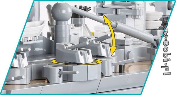 Das Blockmodell des Genisenau-Schiffes wurde mit hochwertigen Drucken überzogen, die sich auch während des Gebrauchs nicht abnutzen. Bemerkenswert ist die aufwendig reproduzierte Form des Rumpfes und die Berücksichtigung, so viele Details wie möglich beizubehalten. Das Modell verfügt über zahlreiche bewegliche Teile wie: Propeller, Ruder, drehbare Türme und Kanonenrohre, die angehoben und abgesenkt werden können. Das Set enthält auch einen sehr stabilen und ästhetischen schwarzen Displayständer und eine weiße Platte mit dem Namen des Schiffes. Obwohl das Schiff sehr groß ist, ist seine Konstruktion dank der intuitiven Bauanleitung auf der Grundlage klarer Symbole einfach. Knapp 2.500 Elemente sorgen für viele Baustunden und eine tolle Wirkung! Das Schiff Gneisenau ist ein idealer Ausgangspunkt für Fans von Geschichte, Wehrtechnik, Militär und Marine. Nach dem Zusammbau sieht das Schiff sehr beeindruckend aus, zieht Blicke auf sich und wird sicherlich zu einer Dekoration Ihrer Sammlung, Ihres Wohnzimmers oder Ihres Büros! Drücken Sie Ihre Leidenschaft aus und bauen Sie Block für Block eine Geschichte auf!