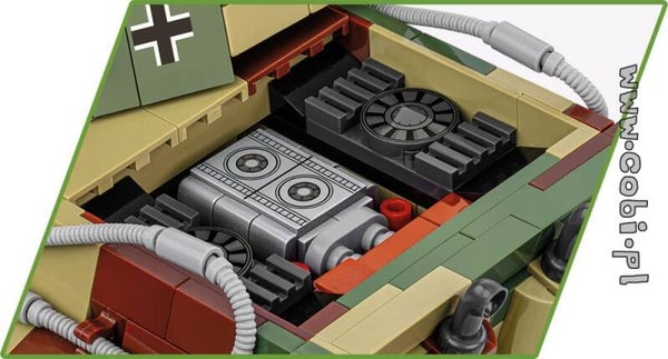 - Der Tiger II, auch Königstiger genannt, war ein deutscher schwerer Panzer, der im Zweiten Weltkrieg eingesetzt wurde. Erstmals im COBI-Angebot wurde der größte Tiger im Maßstab 1:35 entworfen und erhielt eine farbenfrohe Tarnung, die für die Endphase des Krieges charakteristisch ist. Das Modell verfügt über bewegliche Räder, funktionierende Kettentraktion, einen rotierenden Turm mit beweglicher Kanone, eine Luke, in die Sie eine Figur platzieren können, einen abnehmbaren Motor und viele andere Details!