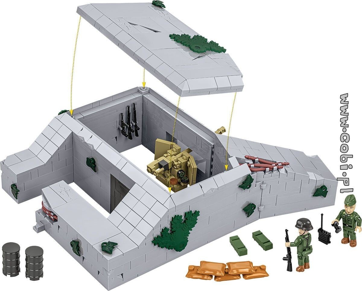 Dieses Set ist eine originalgetreue Nachbildung eines deutschen Kampfbunkers, der während der Verteidigungsoperationen des Atlantikwalls eingesetzt wurde. Die Struktur wurde angepasst, um Soldaten und Ausrüstung vor dem erwarteten Angriff der Alliierten zu schützen. Die massiven Mauern aus Stahlbeton widerstanden effektiv Bombenangriffen und Artilleriefeuer und wurden zu einem der Schlüsselelemente der strategischen Verteidigungslinie des Dritten Reichs.