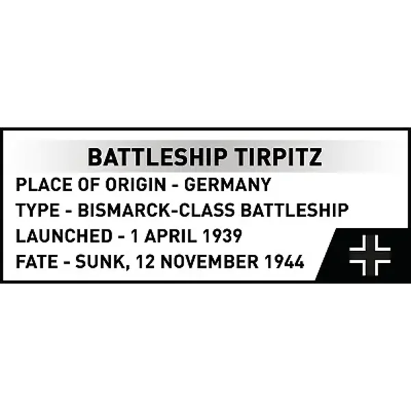 Die Modelle der Tirpitz und Bismarck sind Teil der COBI-Modellreihe im Maßstab 1:700. Sammeln Sie alle Modelle und erleben Sie die perfekte Kombination aus Präzision und kompakter Größe!