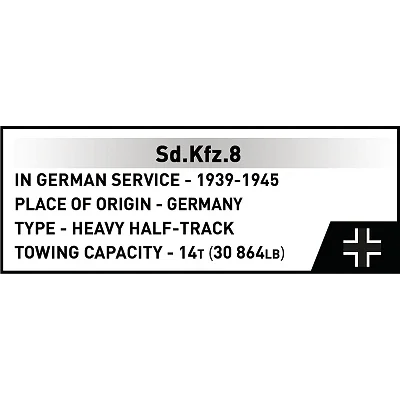Bewegliche Elemente: - Die drehbare Lafette, das verstellbare Rohr und die ausgefeilten Mechanismen lassen die Kanone wie ein Original aussehen und sich auch so verhalten. Detailliertes Fahrwerk und realistische Ketten des Sd.Kfz. 8- Halbkettenfahrzeugs: Jedes Element wurde mit Blick auf Langlebigkeit und historische Genauigkeit entwickelt.