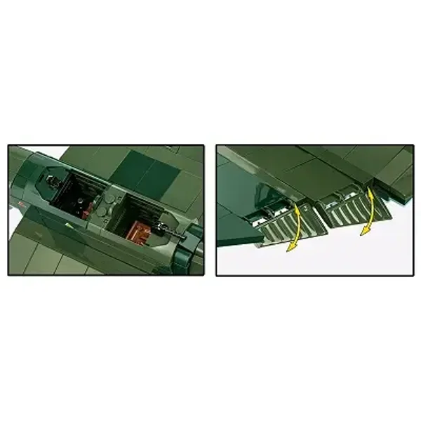 • Hochwertige Drucke – das Modell kommt ohne Aufkleber aus. Alle Embleme, Insignien, Nummern und Markierungen sind direkt auf die Steine gedruckt und dadurch langlebig, präzise und abriebfest. Der Rumpf des Modells trägt ein kleines, gut sichtbares Panzersymbol. Solche Symbole kennzeichneten bestätigte Treffer und die Zerstörung feindlicher Panzerfahrzeuge.